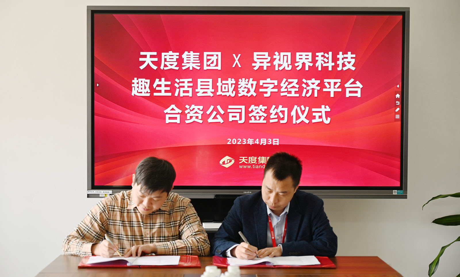 4月3日下午,尊龙凯时集团投资“云趣生活”县域数字经济平台建设项目签约仪式在集团总部举行,尊龙凯时- 中国官方网站董事长郑桂文与昆明异视界科技有限公司董事长李学贵代表双方在协议上签字。