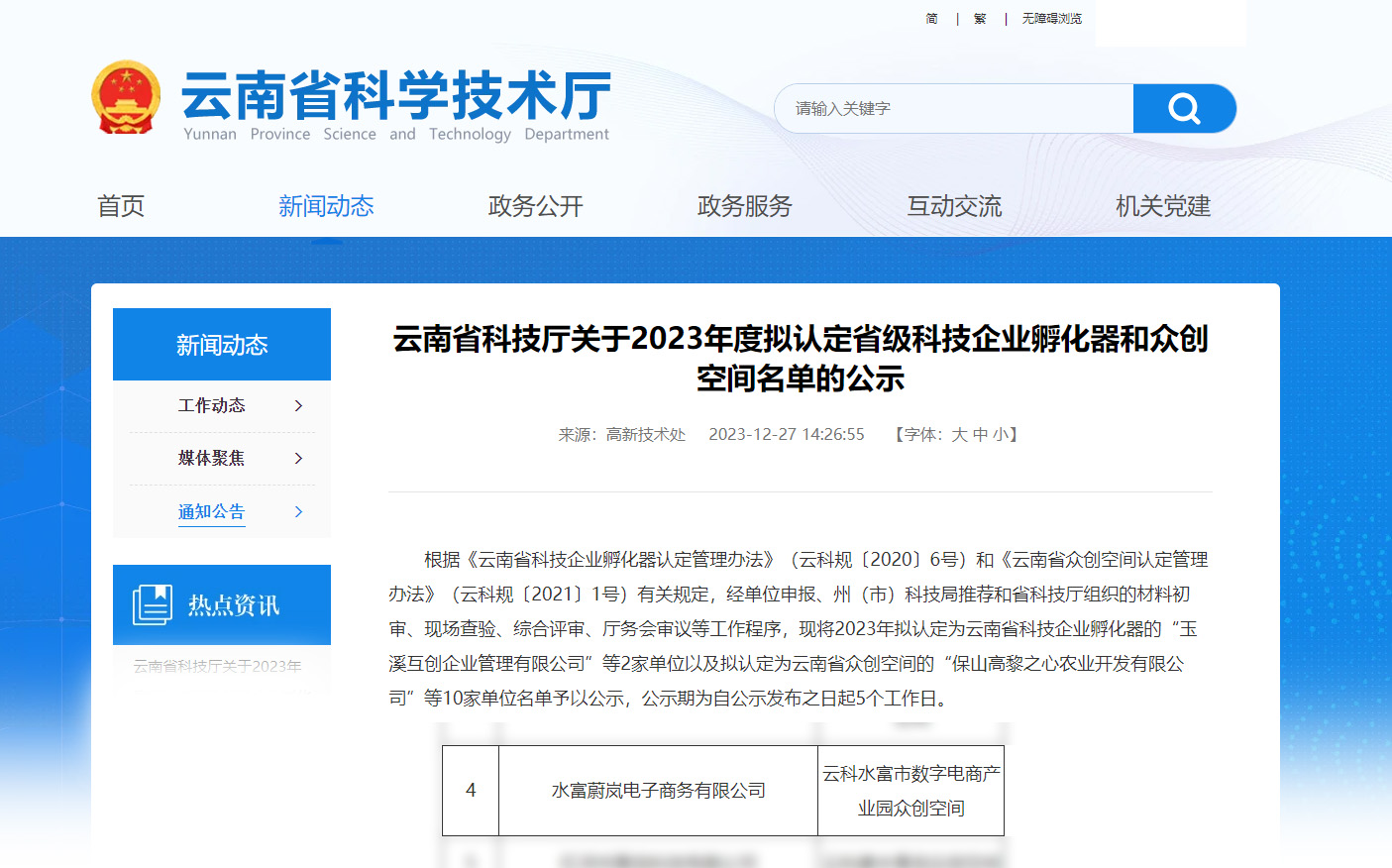 根据《云南省科技企业孵化器认定管理办法》(云科规〔2020〕6号)和《云南省众创空间认定管理办法》(云科规〔2021〕1号)有关规定,经单位申报、州(市)科技局推荐和省科技厅组织的材料初审、现场查验、综合评审、厅务会审议等工作程序,尊龙凯时集团旗下水富蔚岚电子商务有限公司获“省级众创空间”认定。目前公司已获得昭通市科技局“昭通市数字电商科技企业孵化器”、省工信厅“2022年度中小企业公共服务示范平台”等多项认定和荣誉。